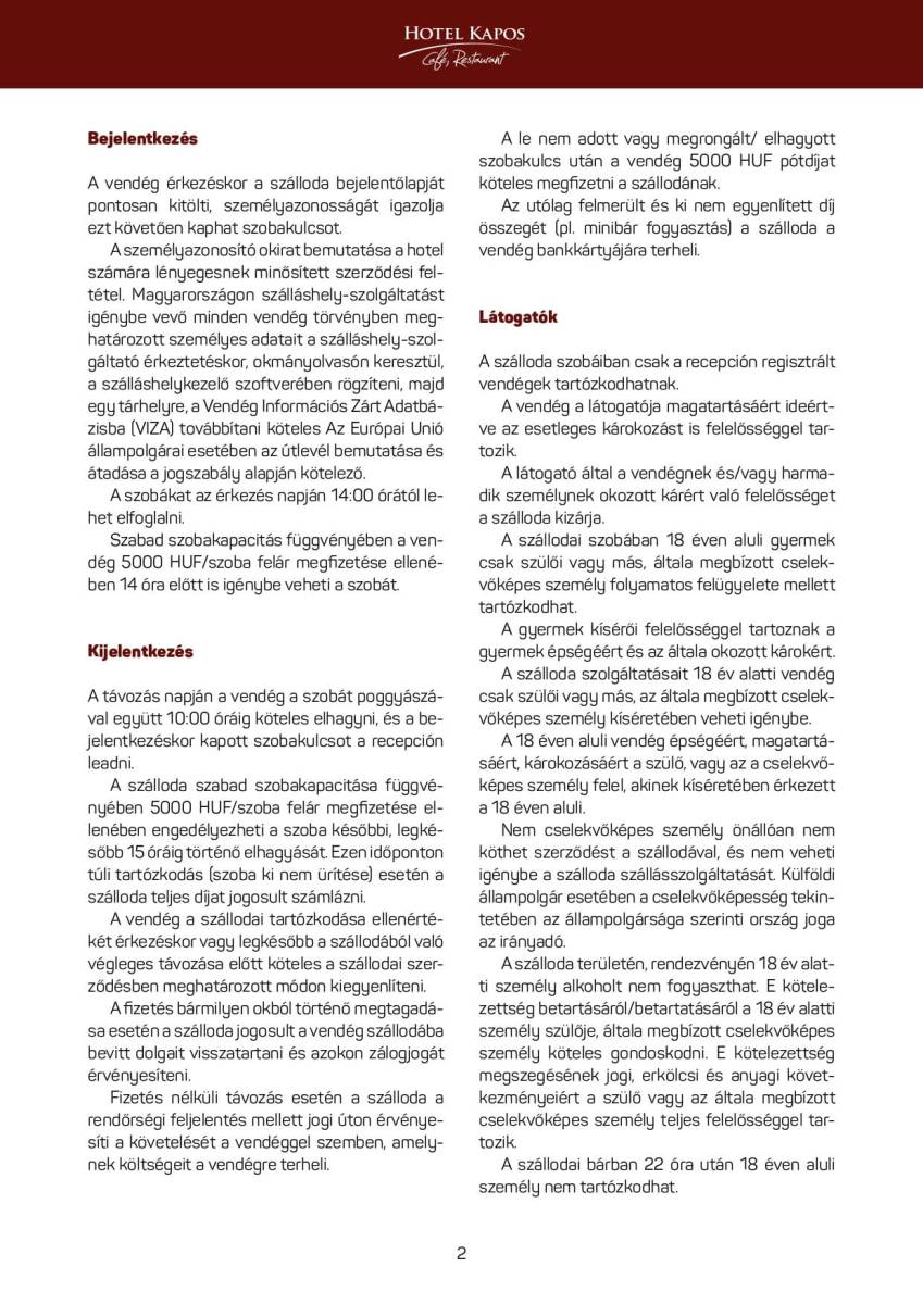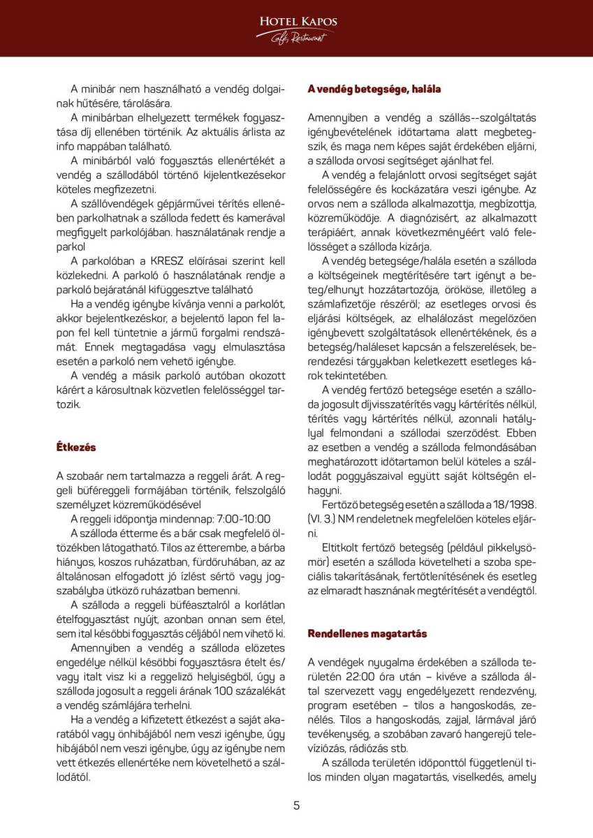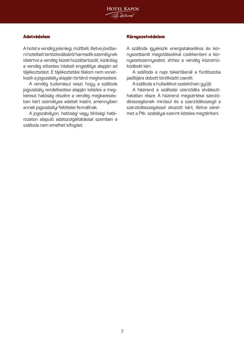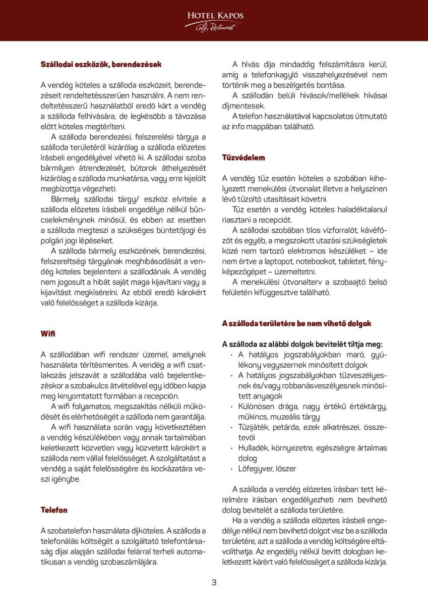 A Kapos Étterem házirendjét megtekintheti a képre kattintva, lapozható formátumban (a képek melletti nyilak segítségével tud lapozni előre és hátra az oldalai között), vagy a képek alatt megtalálja letölthető formátumban (pdf) is.