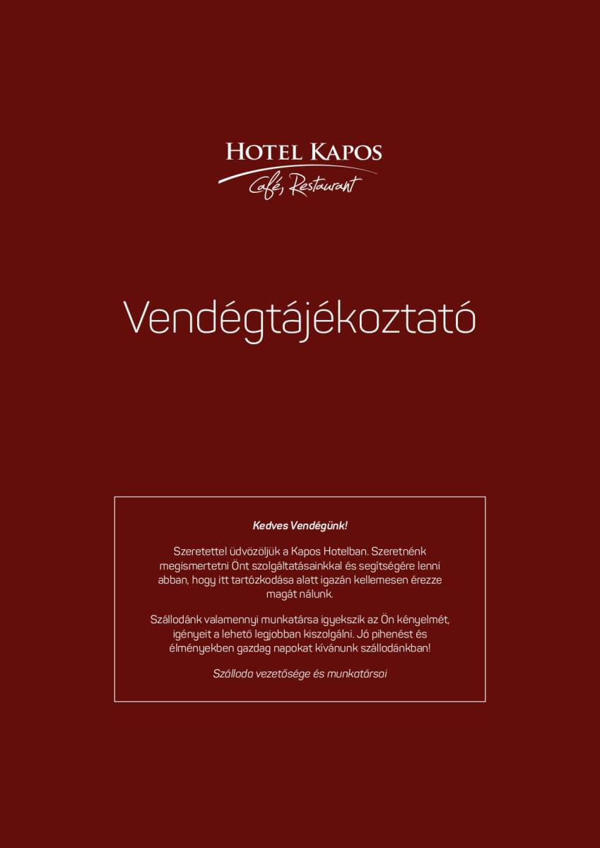 A Kapos Étterem vendégtájékoztatóját megtekintheti a képre kattintva, lapozható formátumban (a képek melletti nyilak segítségével tud lapozni előre és hátra az oldalai között), vagy a képek alatt megtalálja letölthető formátumban (pdf) is.